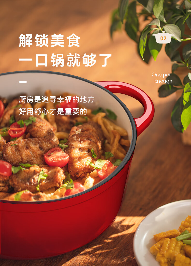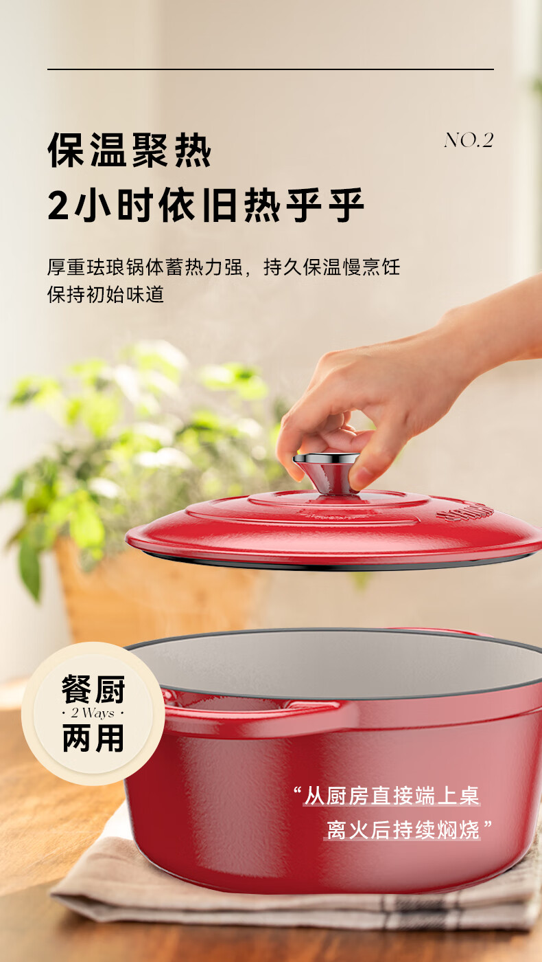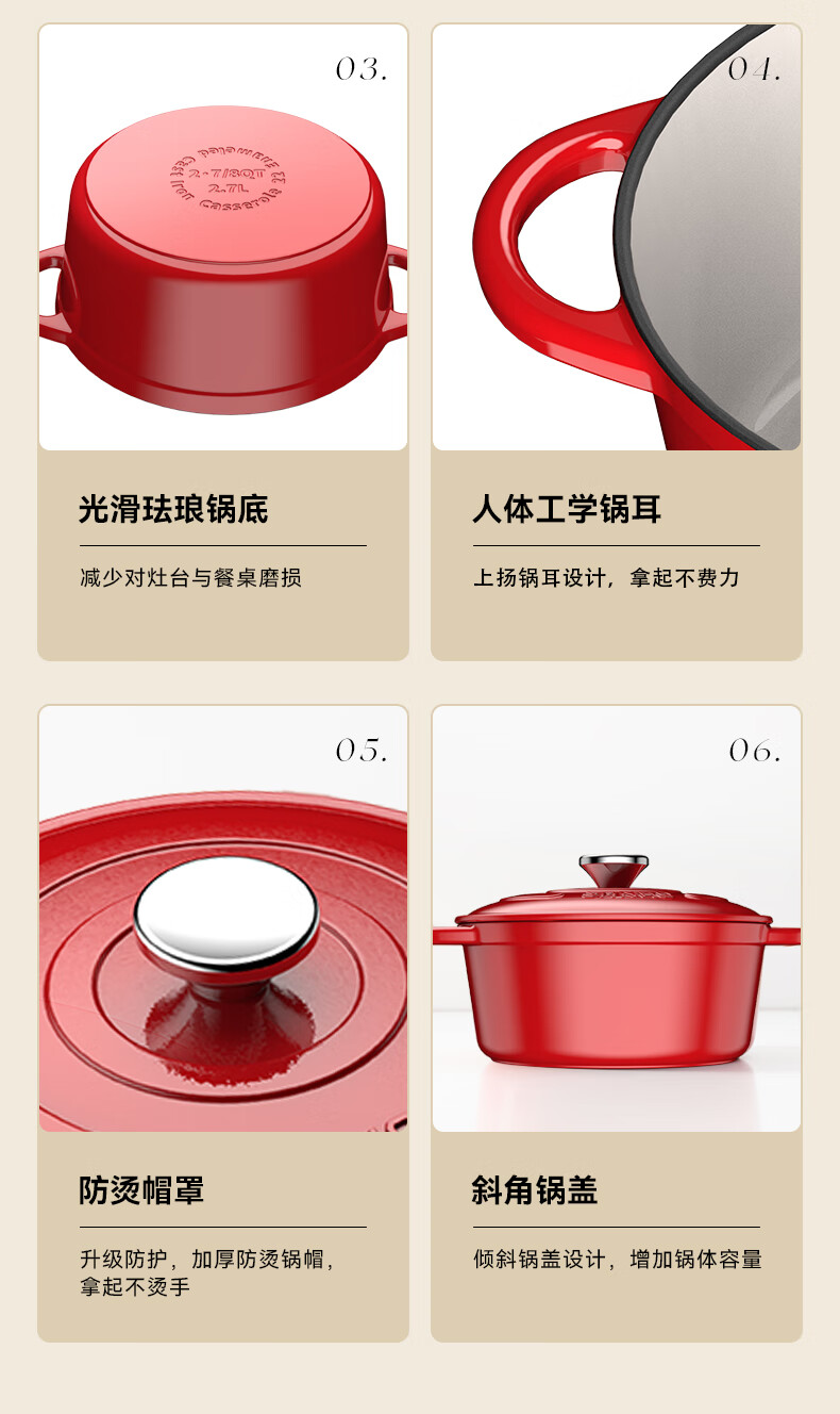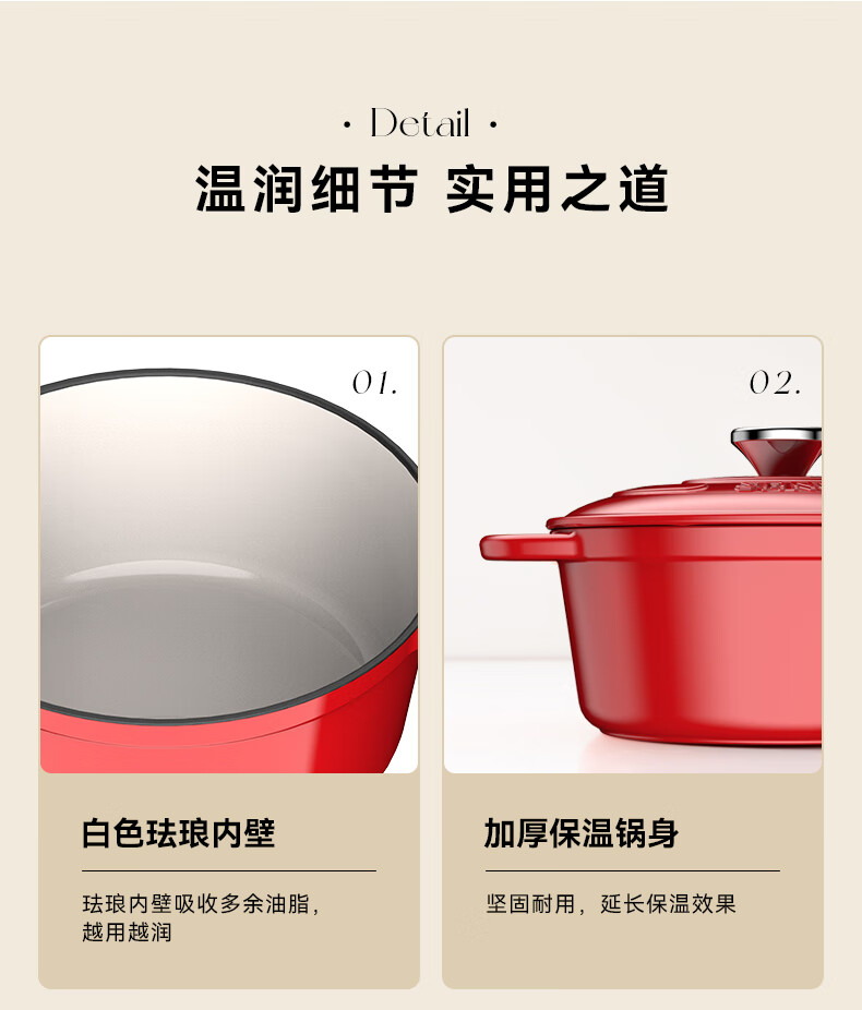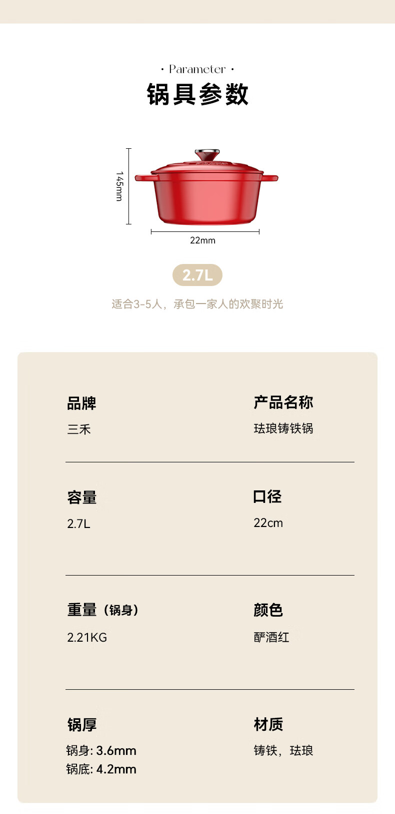 商品属性 [供应商] 得力集团有限公司 [口径] 22cm [容量] 2.7L [材质] 铸铁、珐琅