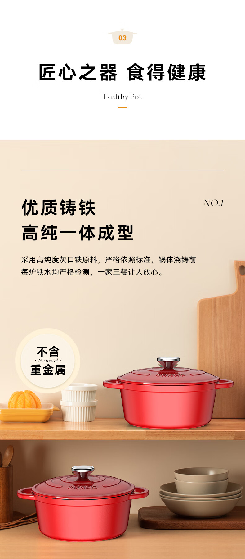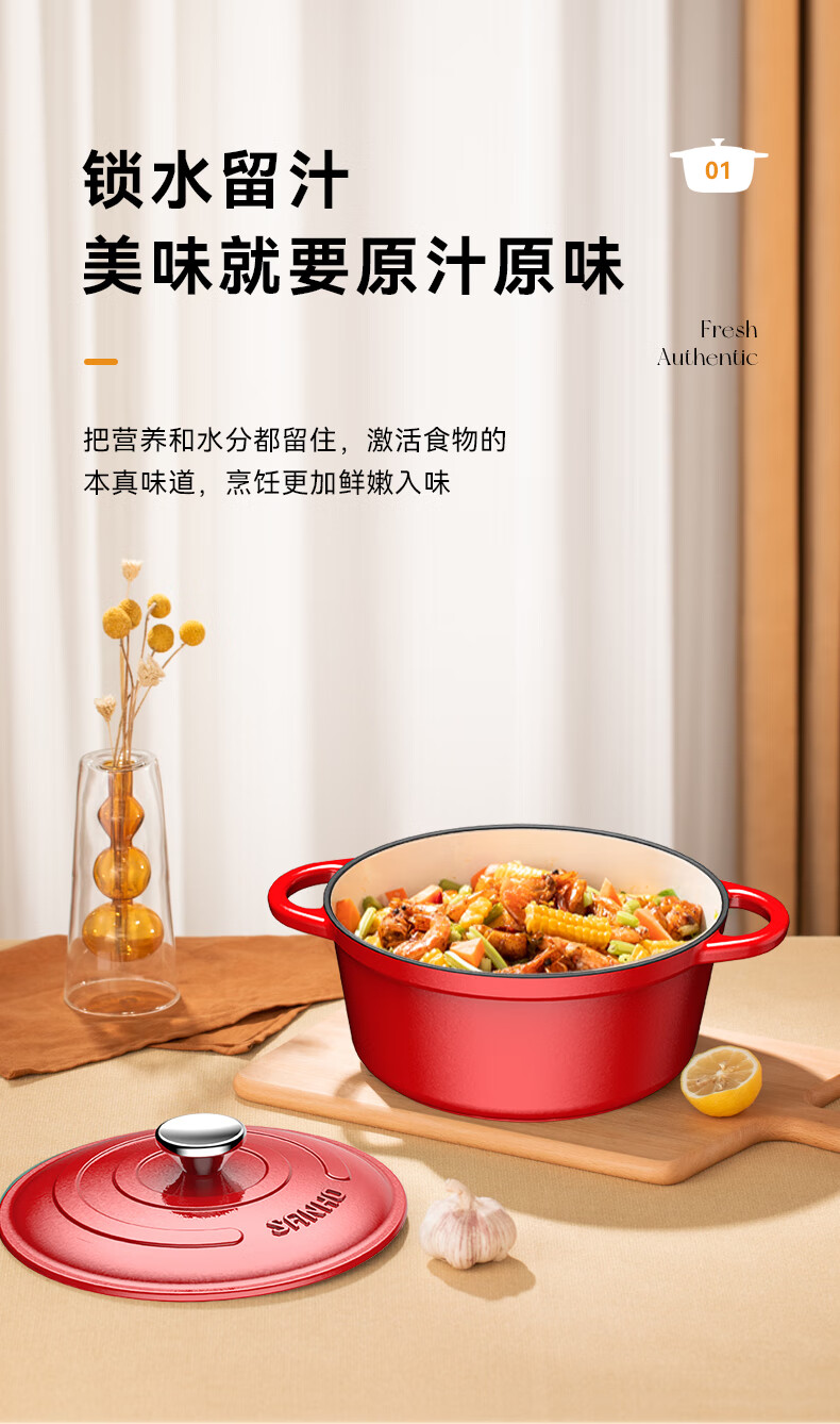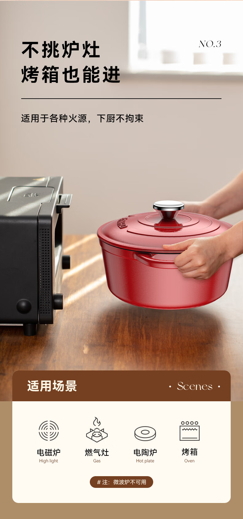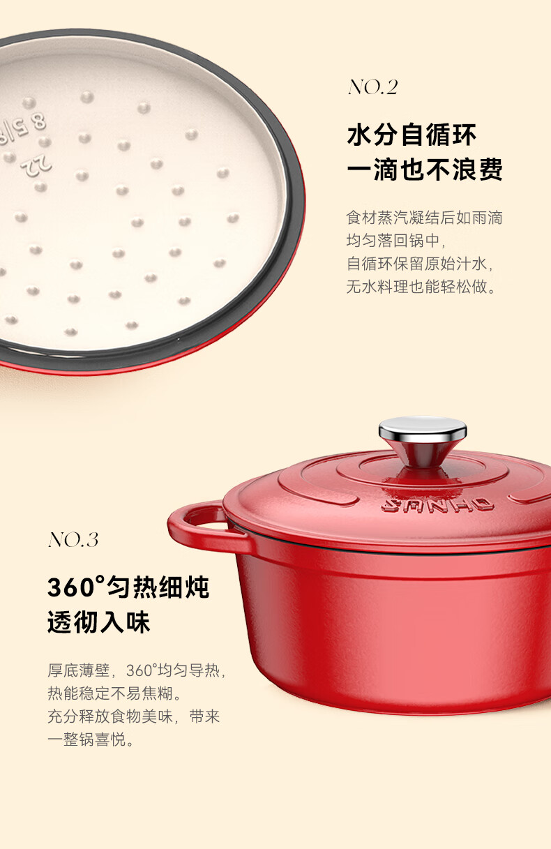 商品属性 [供应商] 得力集团有限公司 [口径] 22cm [容量] 2.7L [材质] 铸铁、珐琅