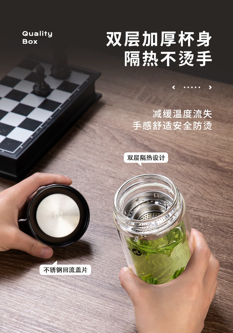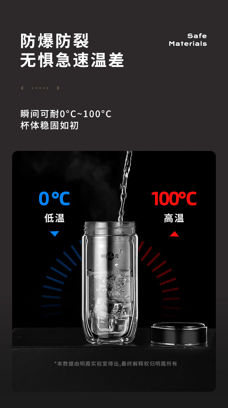 商品属性 [供应商] 科力普科技集团股份有限公司 [容量] 300ml [材质] 高硼硅玻璃杯 [包装规格] 300ml [适用场景] 居家/职场/学校/旅行/车用 [尺寸] 7.8*13.8cm [商品类型] 双层玻璃杯 [品牌] 明霞 [型号] MXJD8003-ST300
