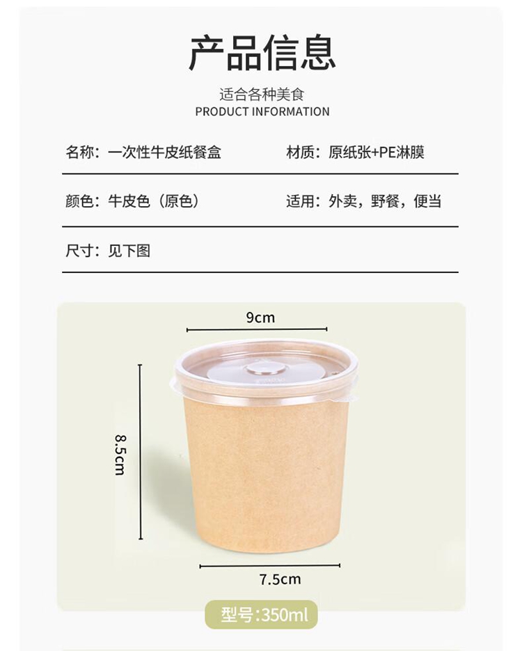 商品属性 [供应商] 得力集团有限公司 [品牌] 芳草地 [型号] 3G6033 [商品标题] 芳草地 一次性加厚牛皮纸打包盒750ml*15套单格饭盒快餐盒便当盒带盖纸碗 [销售单位] 包