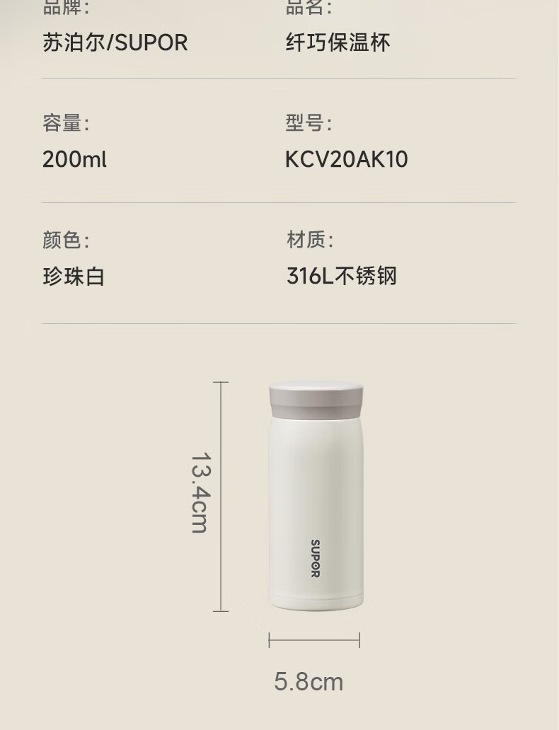 商品属性 [供应商] 深圳市怡亚通供应链股份有限公司 [品牌:] 苏泊尔(SUPOR) [型号:] KCV20AK10 [规格:] 200ml