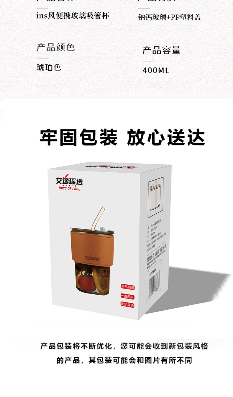商品属性 [供应商] 得力集团有限公司 [品牌] 艾逸瑶选 [型号] CJ-21080 [商品标题] 艾逸瑶选 ins风便携玻璃吸管杯 CJ-21080(单位:个) [销售单位] 个