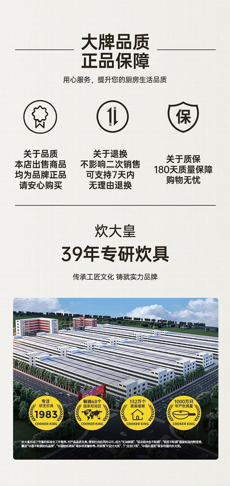 商品属性 [供应商] 深圳齐心集团股份有限公司 [品牌] 炊大皇(COOKER KING) [型号] JG28DB-H [材质] 铝合金 [适用炉灶] 燃气灶,电磁炉,电陶炉