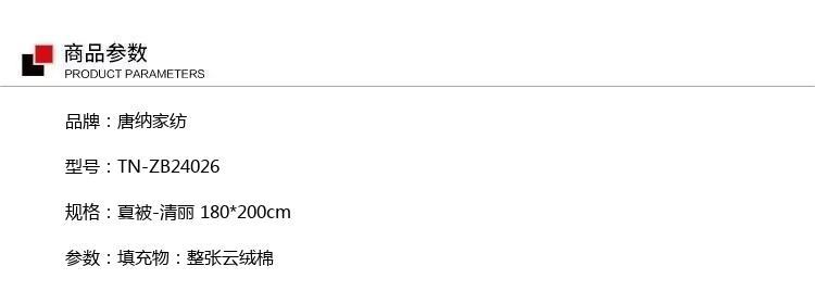 商品属性 [供应商] 深圳齐心集团股份有限公司 [品牌] 唐纳家纺 [型号] TN-ZB24026 [填充物] 整张云绒棉