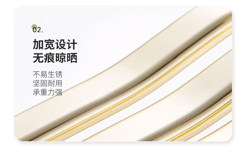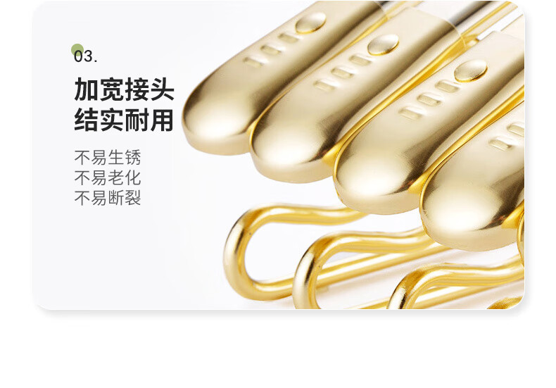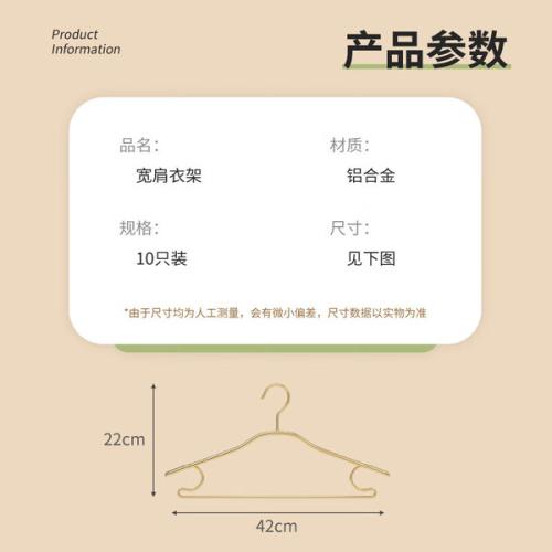 商品属性 [供应商] 德致商成集团有限公司 [材质] 铝合金 [附加功能] 防滑 [表面工艺] 无表面工艺 [包装清单] 太空铝宽肩衣架琥珀金10只装 [类别] 普通三角衣架