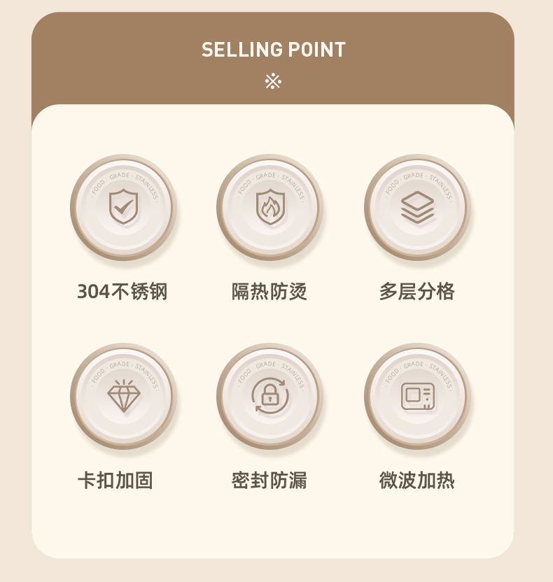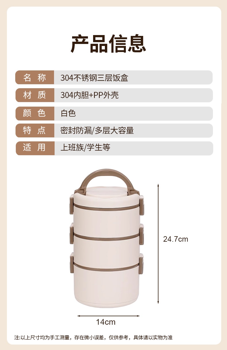商品属性 [供应商] 科力普科技集团股份有限公司 [容量] 三层2500ml [材质] 304不锈钢、食品PP+硅胶 [品牌] 荣事达 [型号] RJ2101-101A