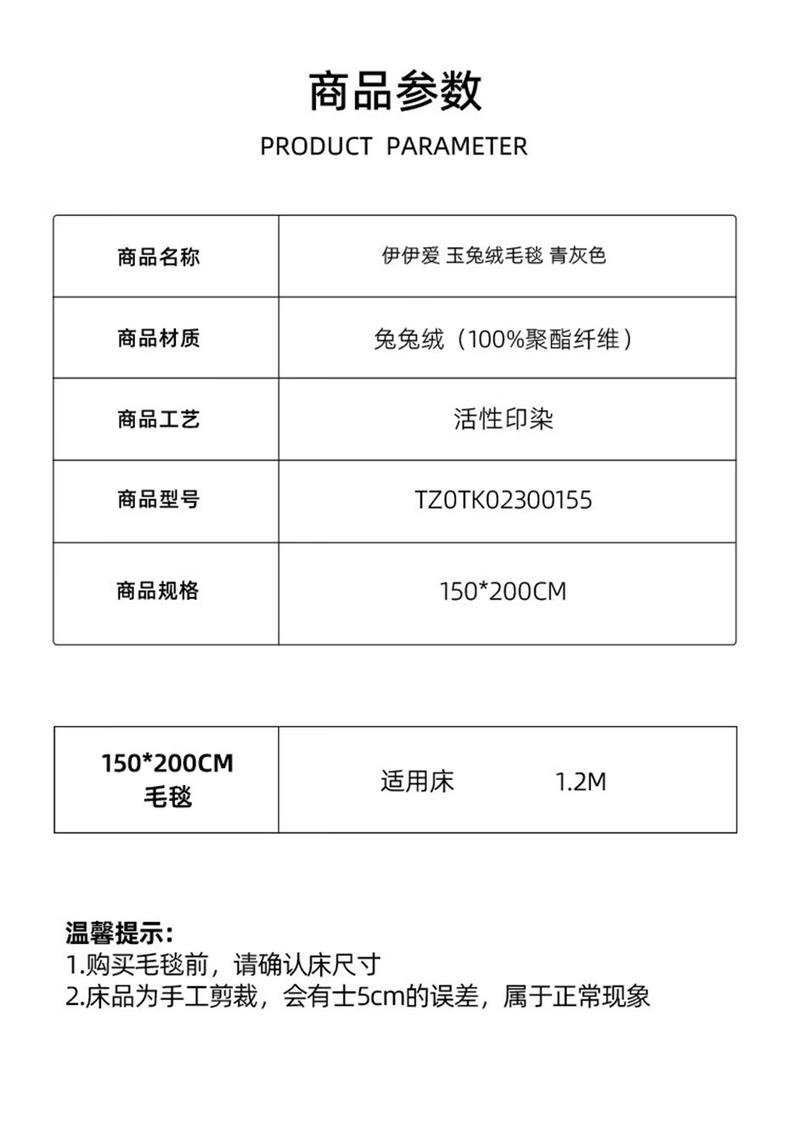 商品属性 [供应商] 得力集团有限公司 [品牌] 伊伊爱 [型号] TZ0TK02300155 [面料] (兔兔绒)100%聚酯纤维 [工艺] 活性印染
