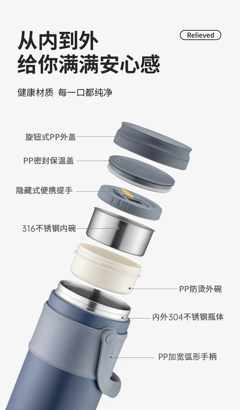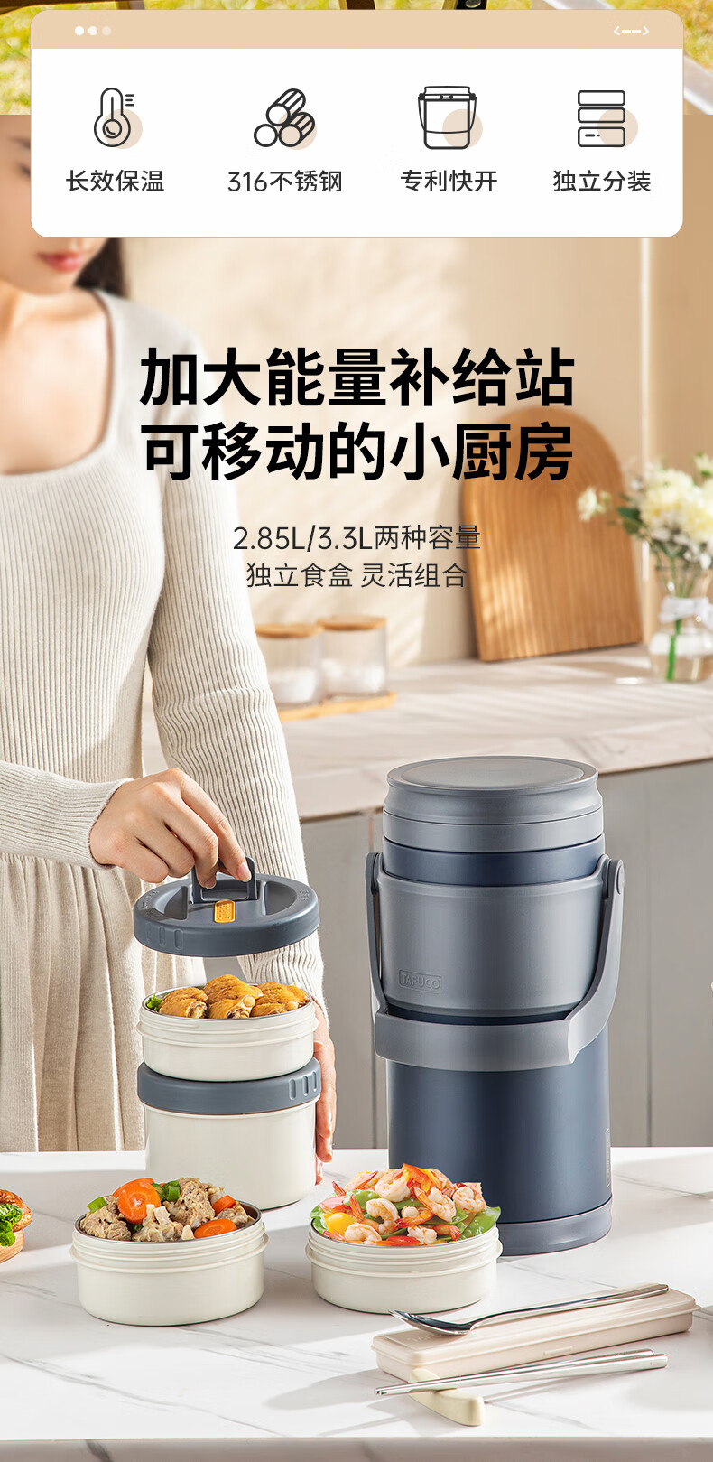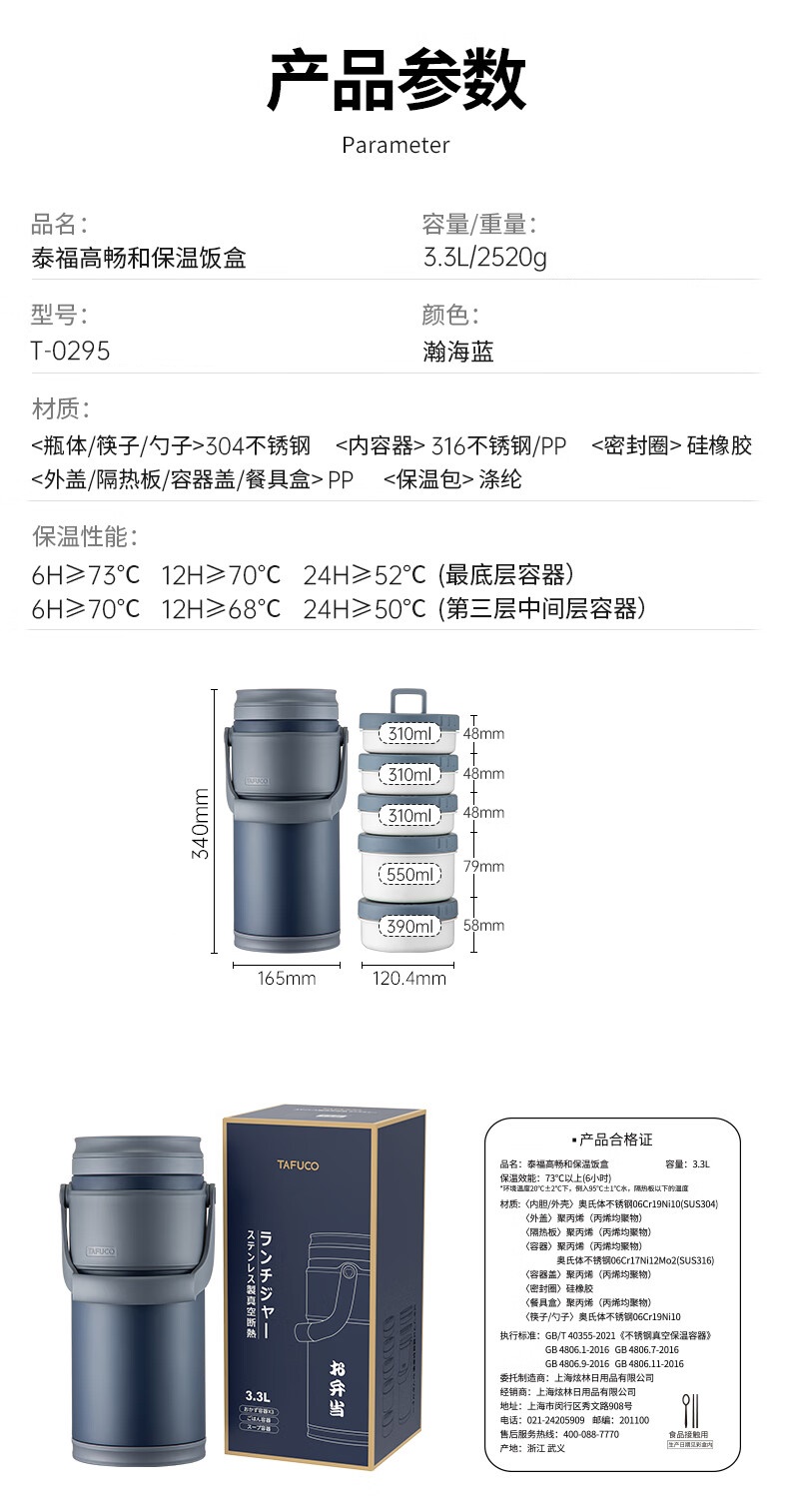 商品属性 [供应商] 得力集团有限公司 [品牌] 泰福高 [型号] T-0295 [商品标题] 泰福高(TAFUCO)T-0295 316不锈钢 畅和保温饭盒 瀚海蓝 3.3L (单位:个) [销售单位] 个
