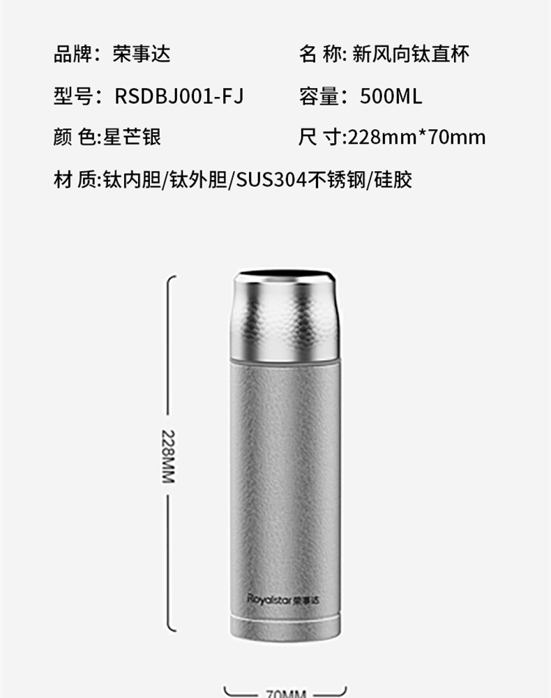 商品属性 [供应商] 科力普科技集团股份有限公司 [品牌] 荣事达 [型号] RSDBJ001-FJ [材质] 304不锈钢 [容量] 500ML