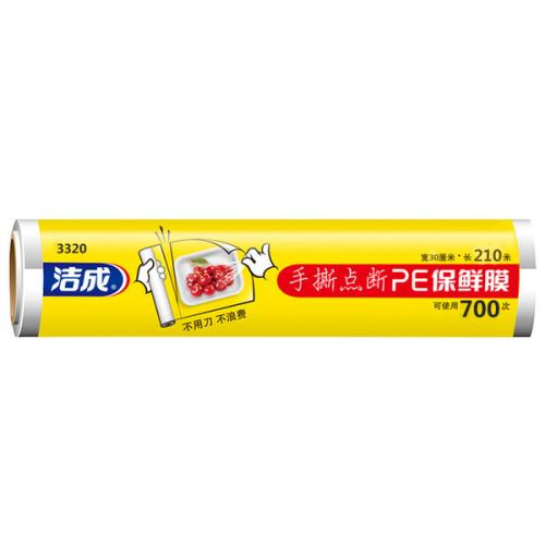 商品属性 [供应商] 上海邮乐网络技术有限公司 [属性名称] 属性值 [品牌] 洁成 [名称] 手撕点断PE保鲜膜 [型号] JC3320 [毛重] 0.65kg [材质] 食品级PE材质 [保质期] 3年