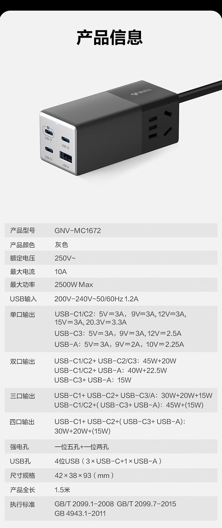 商品属性 [供应商] 深圳齐心集团股份有限公司 [品牌] 公牛(BULL) [型号] GNV-MC1672 [额定电压] 250V