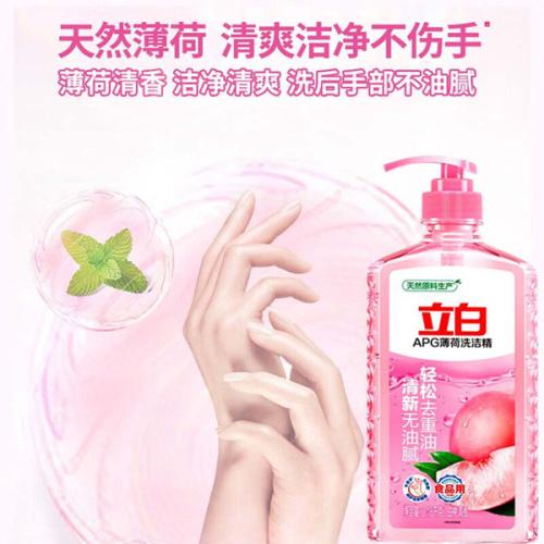 商品属性 [供应商] 上海邮乐网络技术有限公司 [属性名称] 属性值 [品牌] 立白 [产品名称] 立白APG薄荷洗洁精 [保质期] 3年 [香型] 白桃清香 [主要成分] 主要成分:软化水、表面活性剂、烷基糖苷(APG)、碳酸氢钠、薄荷叶提取物。