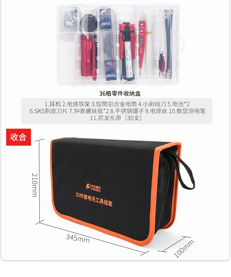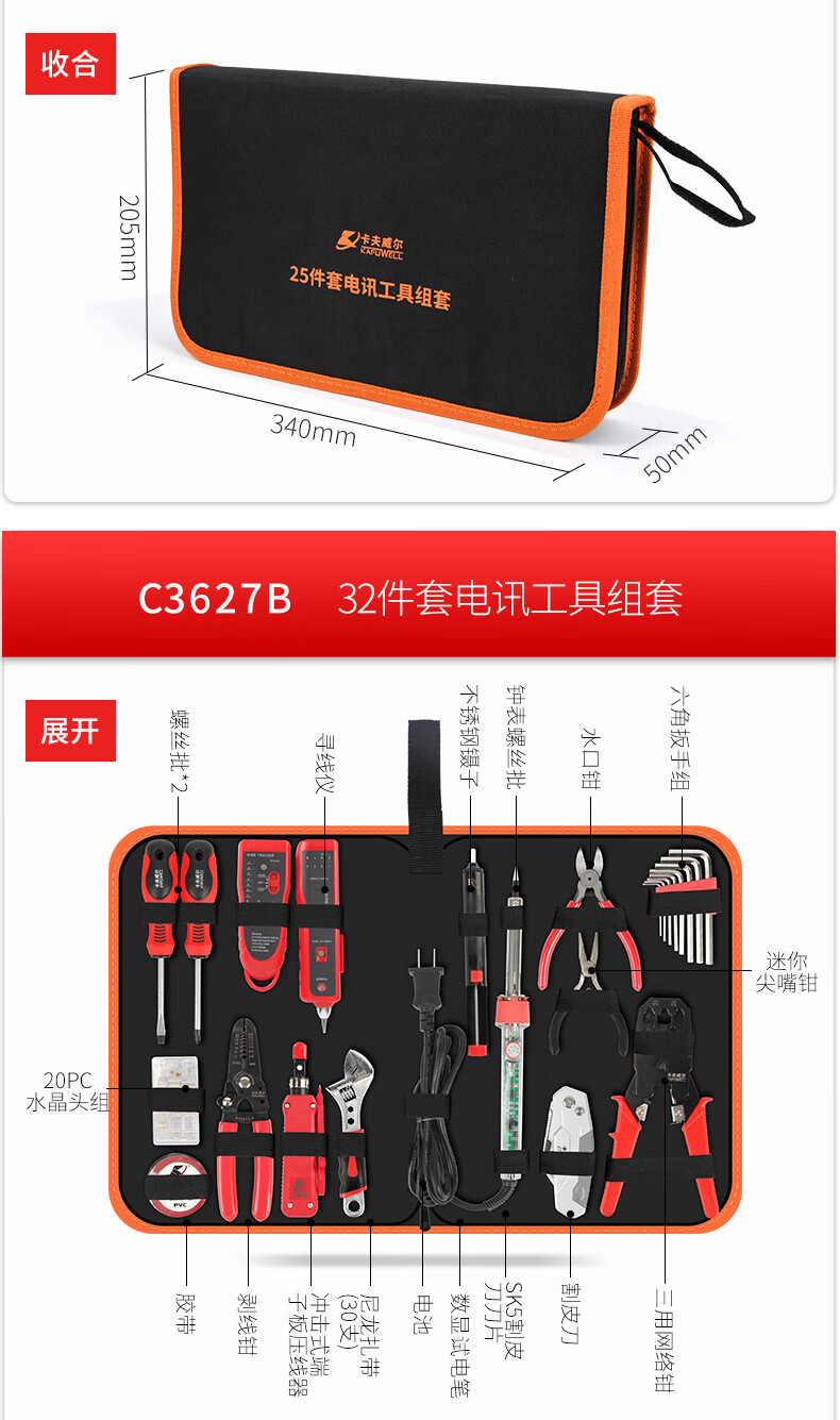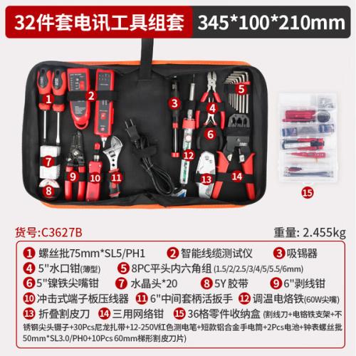 商品属性 [供应商] 德致商成集团有限公司 [包装清单] 卡夫威尔电讯工具组套C3627Bx1 [类别] 多功能工具组套