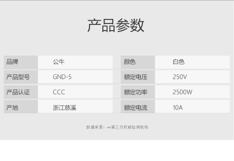 商品属性 [供应商] 科力普科技集团股份有限公司 [品牌] 公牛 [型号] GND-5