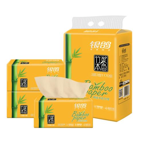 商品属性 [供应商] 上海邮乐网络技术有限公司 [属性名称] 属性值 [品牌] 银鸽 [产品名称] 本色软抽 [抽数] 3层x130抽x3包 [原材料成分] 原生竹浆 [香型] 无香型 [压花] 无