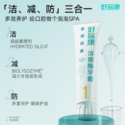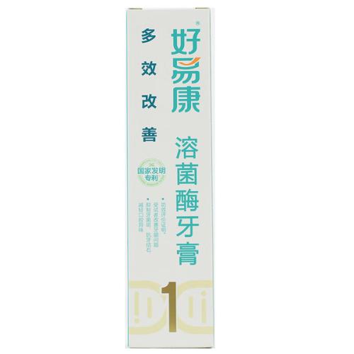 商品属性 [供应商] 得力集团有限公司 [品牌] 好易康 [型号] 120g(1号) [商品标题] 好易康多效改善溶菌酶牙膏120g (1号) (单位:支) [销售单位] 支