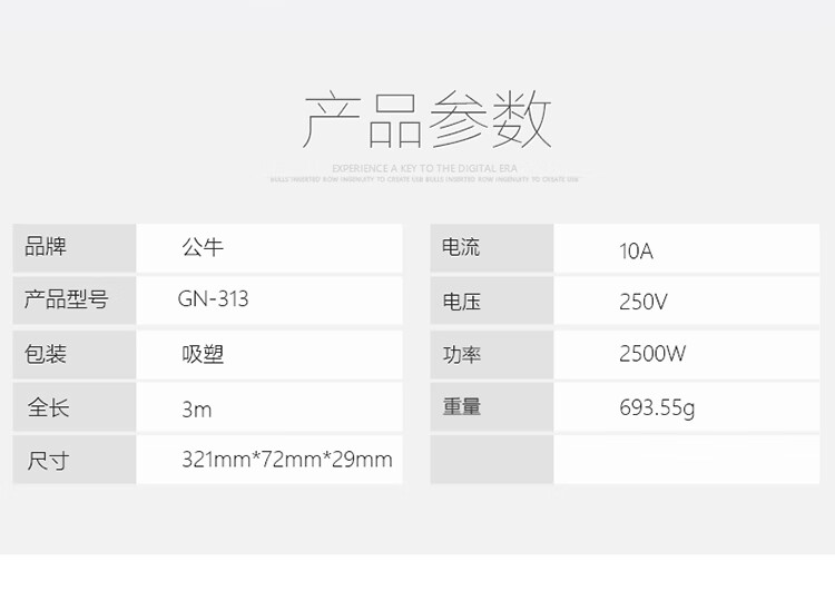 商品属性 [供应商] 深圳市怡亚通供应链股份有限公司 [品牌:] 公牛(BULL) [型号:] GN-313 [规格:] 6位分控 3米