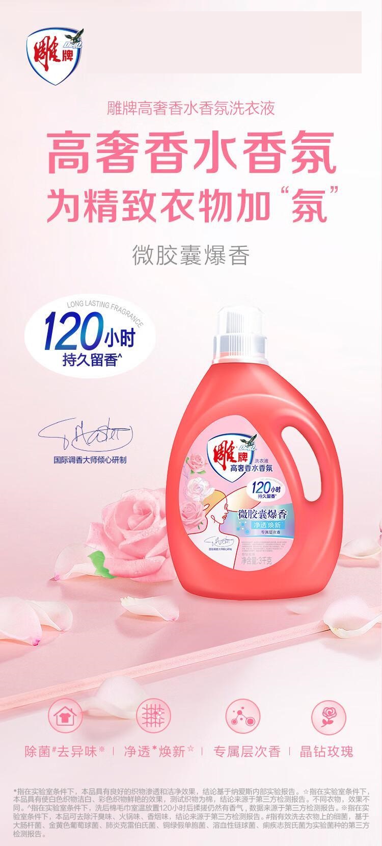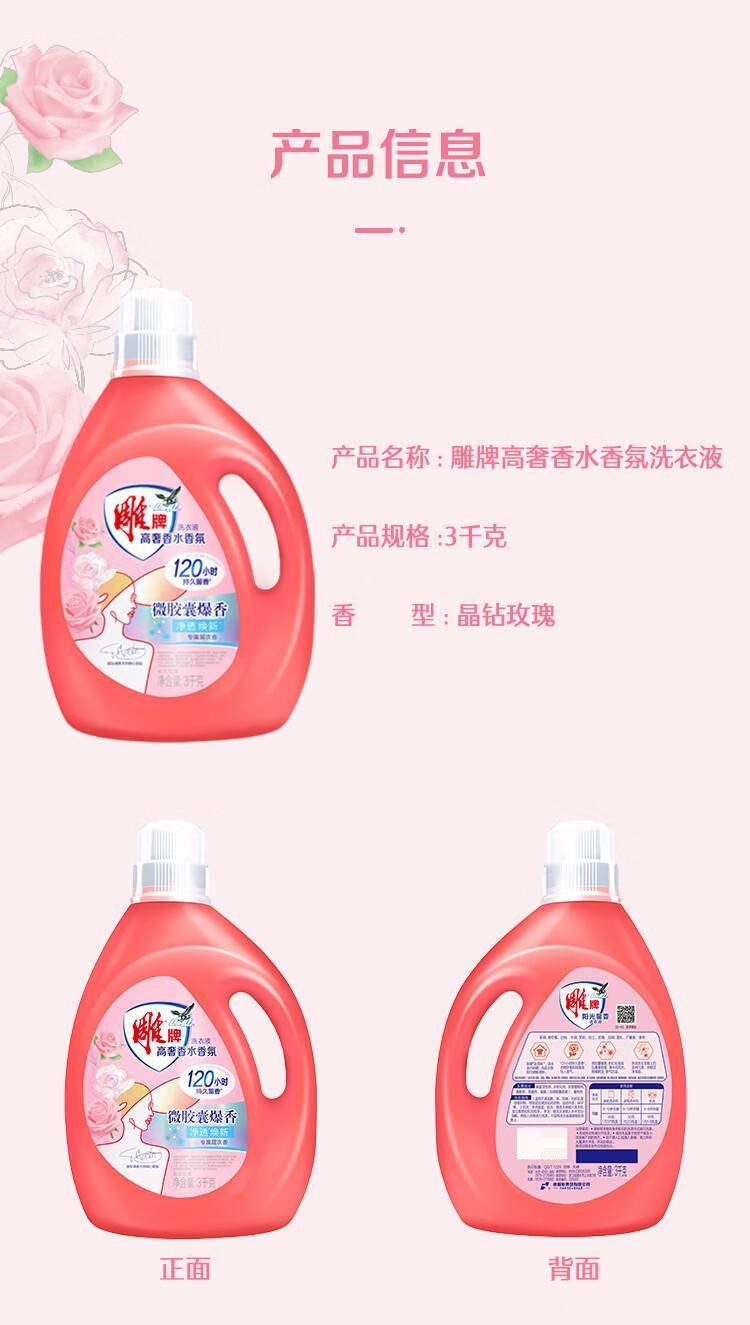 商品属性 [供应商] 深圳齐心集团股份有限公司 [品牌] 雕牌 [型号] 高奢香水香氛洗衣液 [功效] 留香,除菌 [保质期] 3年