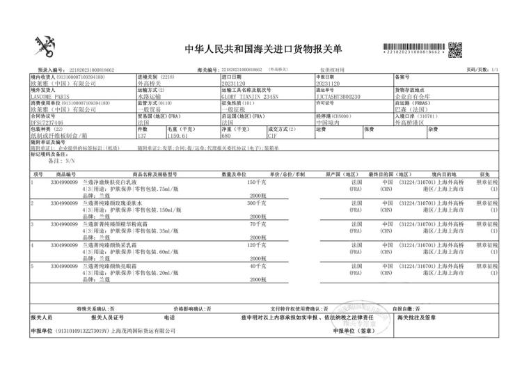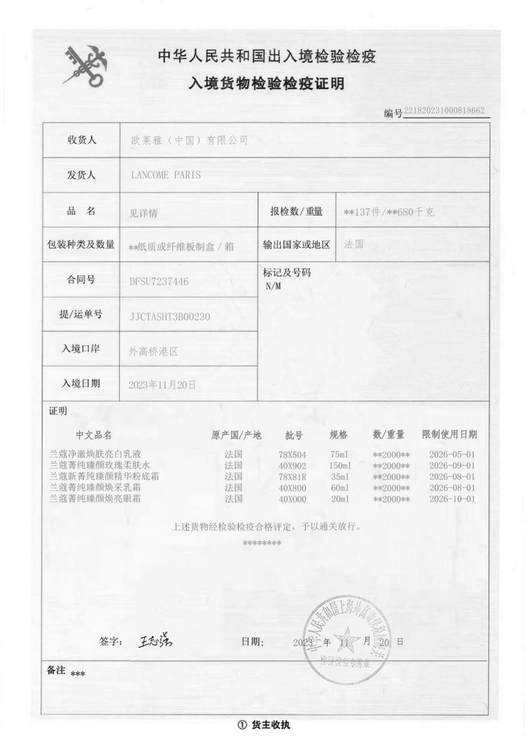 商品属性 [供应商] 深圳市怡亚通供应链股份有限公司 [品牌:] 兰蔻(LANCOME) [型号:] 菁纯臻颜玫瑰 [规格:] 150ml