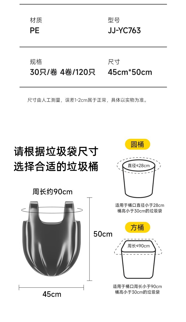商品属性 [供应商] 深圳市怡亚通供应链股份有限公司 [品牌:] 家杰优品 [型号:] JJ-YC763 [规格:] 30只/卷 4卷/包