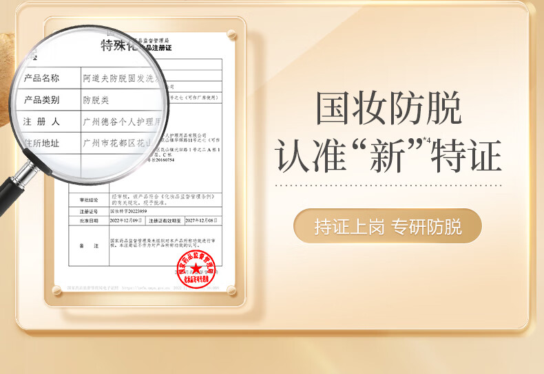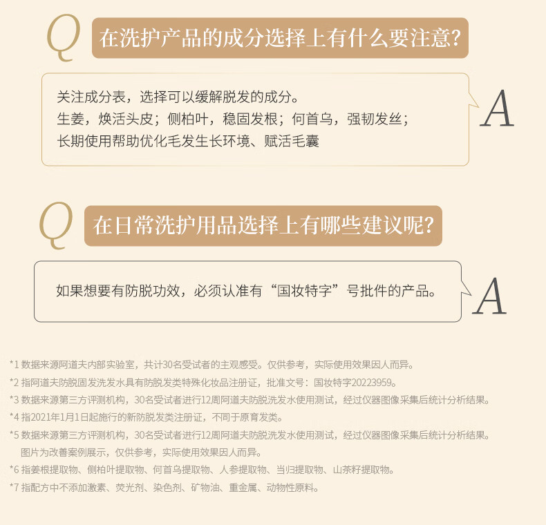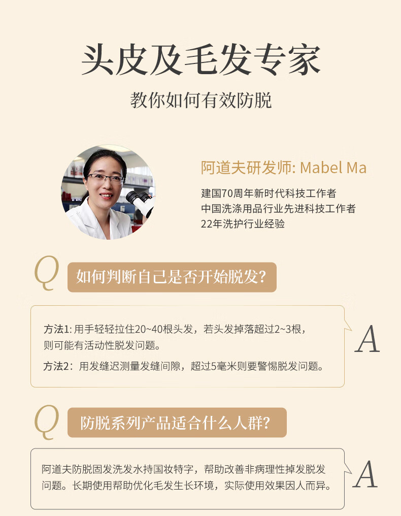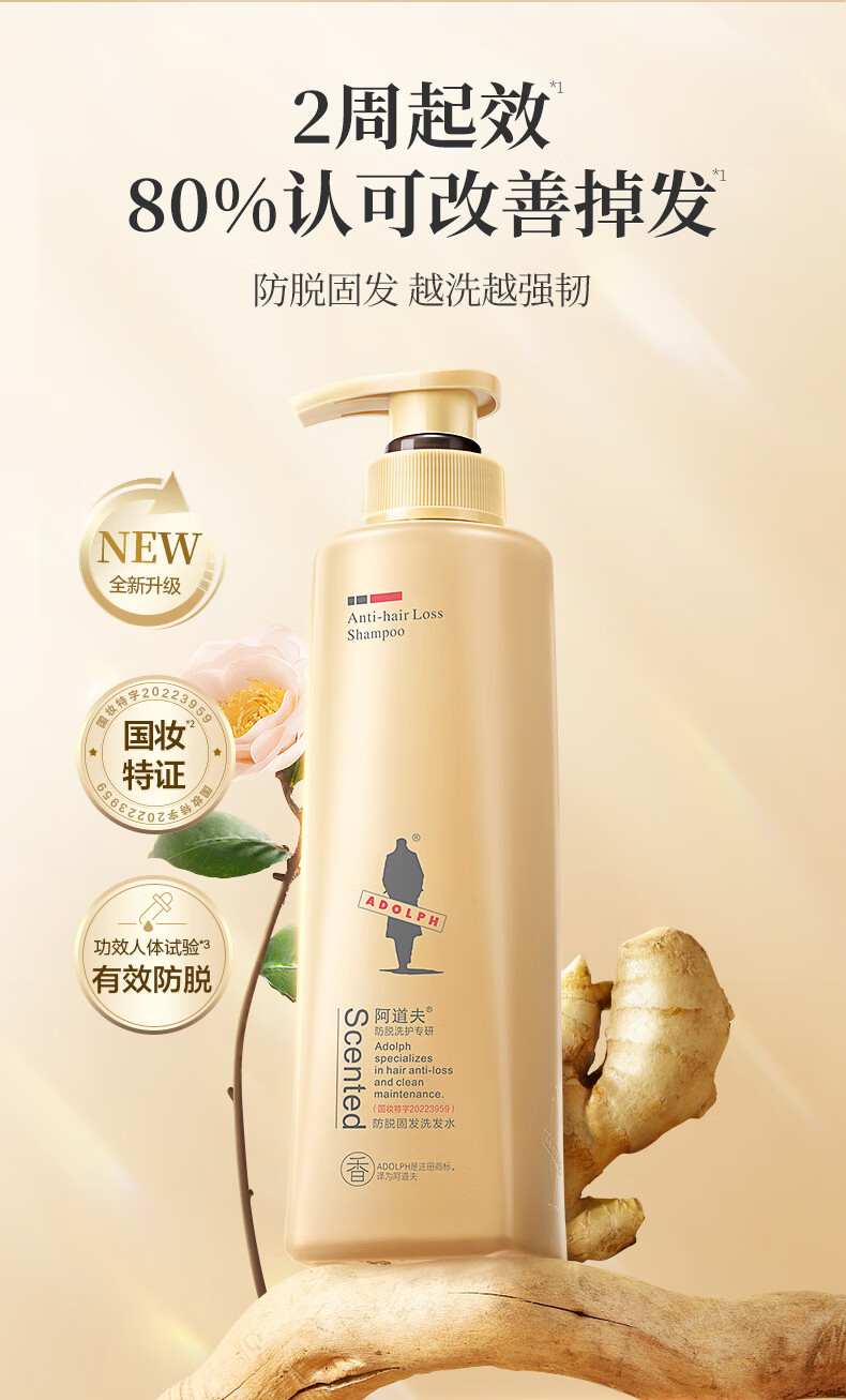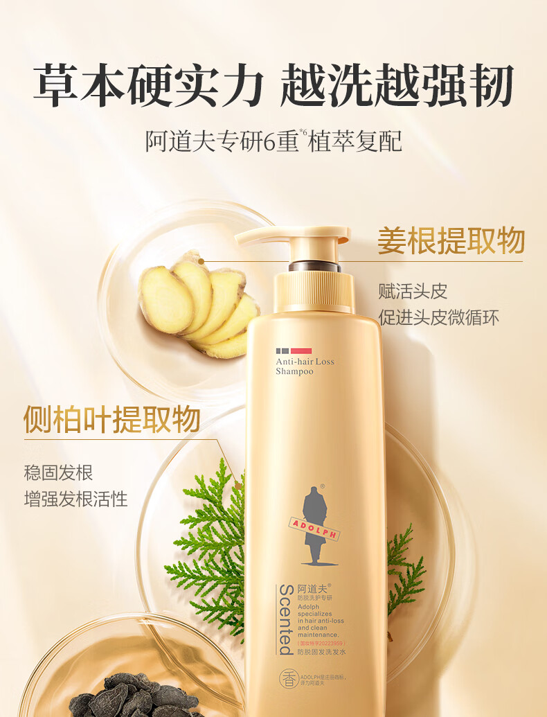 商品属性 [供应商] 德致商成集团有限公司 [功效] 防脱 [净含量] 500ml [包装清单] 防脱育发洗发水500mlx1 [适合头皮] 中性 [产品(注册/备案)名称] 阿道夫防脱固发洗发水