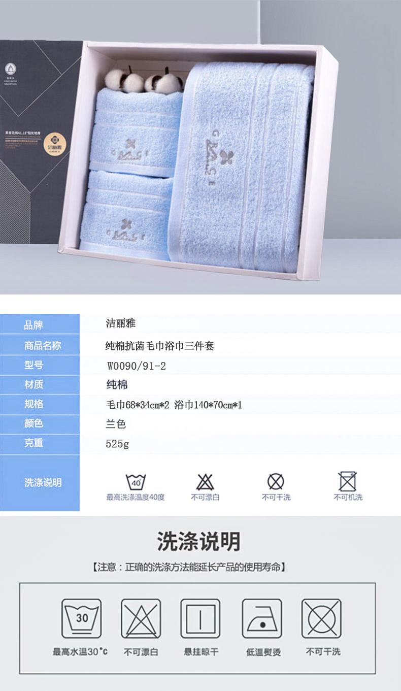 商品属性 [供应商] 深圳市怡亚通供应链股份有限公司 [品牌:] 洁丽雅(grace) [型号:] W0090/91-2 [规格:] 毛巾68*34cm*2 浴巾140*70cm*1