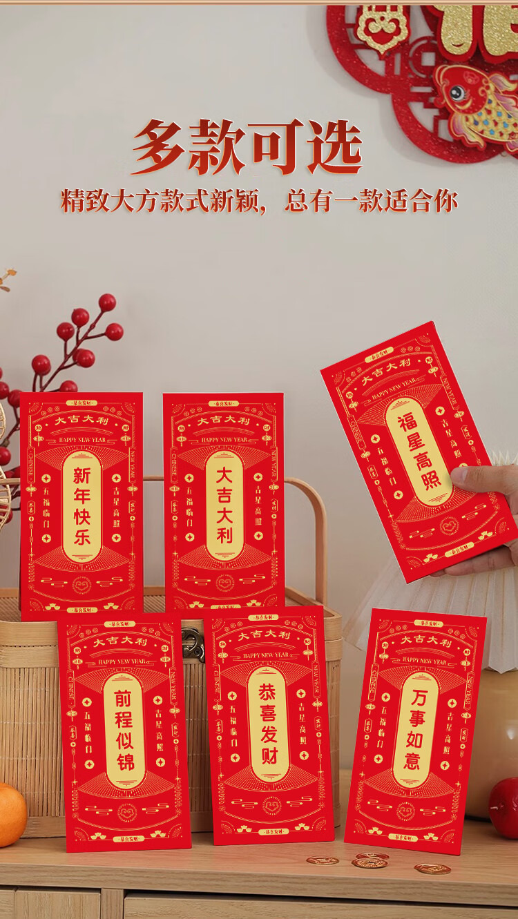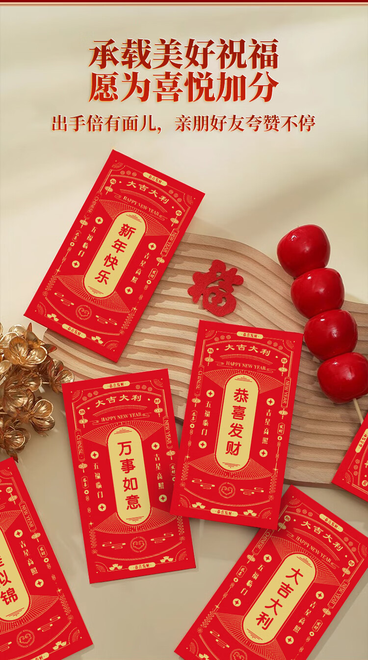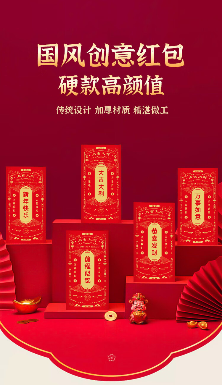 商品属性 [供应商] 深圳市怡亚通供应链股份有限公司 [品牌:] 至同全 [型号:] 新年中式红包 [规格:] 9*17cm 6个/包