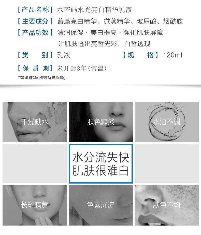 商品属性 [供应商] 深圳市怡亚通供应链股份有限公司 [品牌:] 水密码 [型号:] 水光亮白 [规格:] 120ml