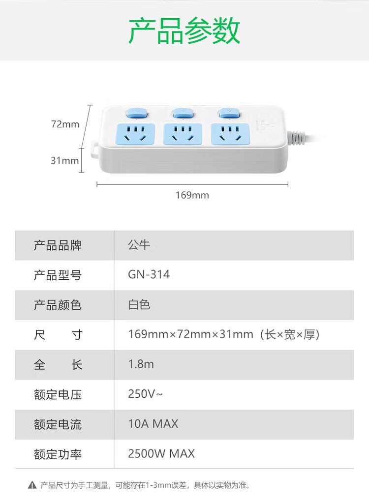 商品属性 [供应商] 深圳市怡亚通供应链股份有限公司 [品牌:] 公牛(BULL) [型号:] GN-314 [规格:] 1.8米