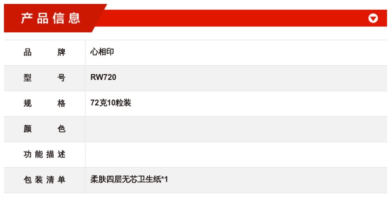 商品属性 [供应商] 史泰博(上海)有限公司 [品牌] 心相印(Mind Act Upon Mind) [型号] RW720