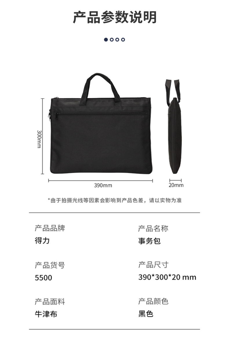 商品属性 [供应商] 科力普科技集团股份有限公司 [材质] 牛津布 [尺寸] 390*300*20mm [品牌] 得力 [型号] 5500