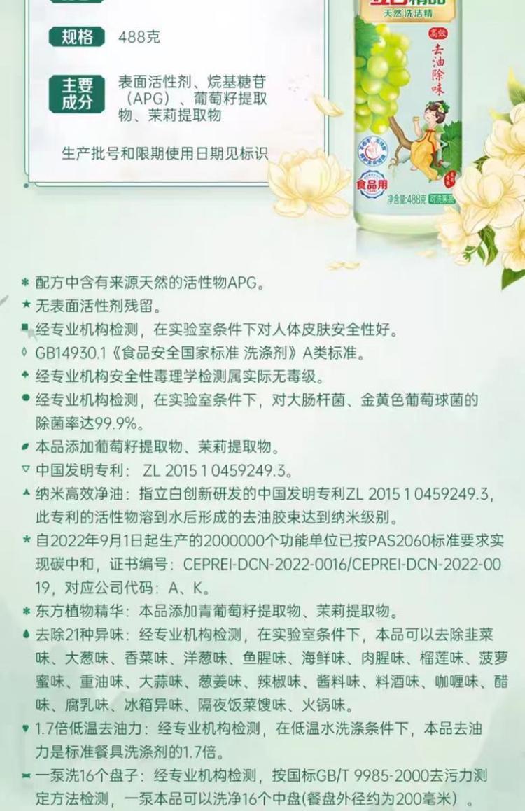 商品属性 [供应商] 深圳齐心集团股份有限公司 [品牌] 立白 [型号] 精品洗洁精 [品名] 立白精品洗洁精(青提茉莉) [保质期] 3年