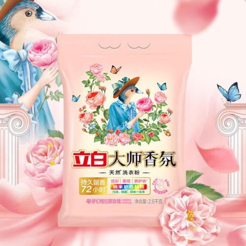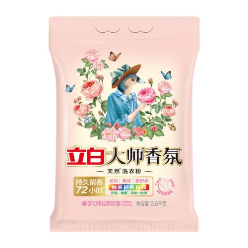 商品属性 [供应商] 上海邮乐网络技术有限公司 [<p>品名</p>] 立白大师香氛天然无磷型洗衣粉 [<p>保质期</p>] 36个月 [<p>规格</p>] 2.6千克 [<p>香型</p>] 梦幻格拉斯玫瑰 [<p>主要成分</p>] 复合表面活性剂、去渍助剂、生物酶制剂、除菌剂、绿色速洁粒子、香精