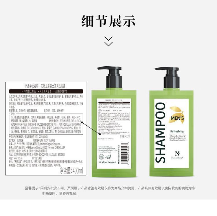 商品属性 [供应商] 深圳齐心集团股份有限公司 [品牌] 天然之扉 [型号] 男士净爽洗发水 [适合头皮] 中性 [保质期] 3年
