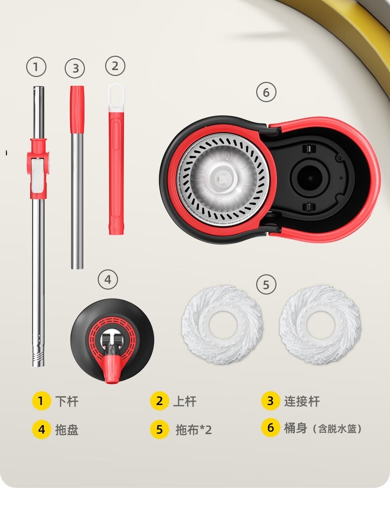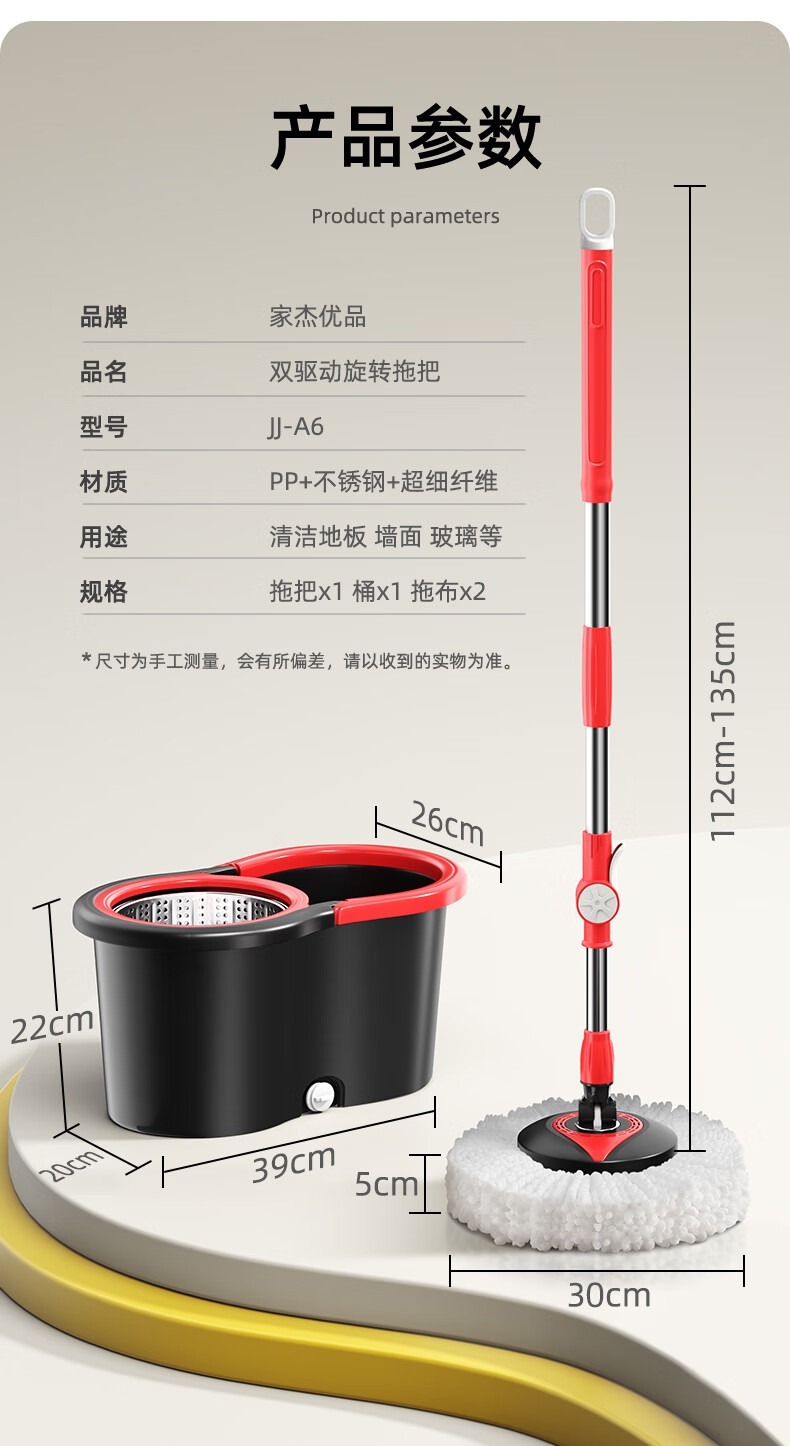 商品属性 [供应商] 深圳市怡亚通供应链股份有限公司 [品牌:] 家杰优品 [型号:] JJ-A6 [规格:] 拖把112*30cm*5cm 桶39*20*22cm