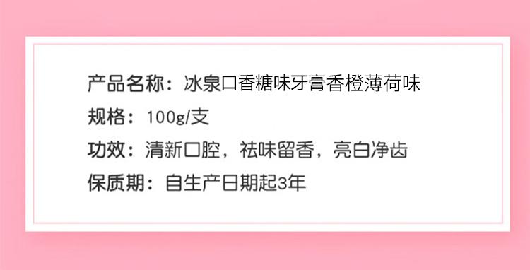 商品属性 [供应商] 深圳市怡亚通供应链股份有限公司 [品牌:] 冰泉(Soyspring) [型号:] 香橙薄荷味 [规格:] 100g