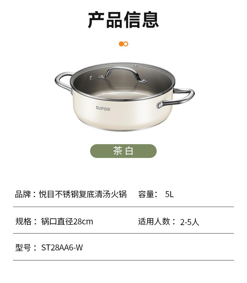 商品属性 [供应商] 深圳市怡亚通供应链股份有限公司 [品牌:] 苏泊尔(SUPOR) [型号:] ST28AA6-W [规格:] 28cm 304不锈钢