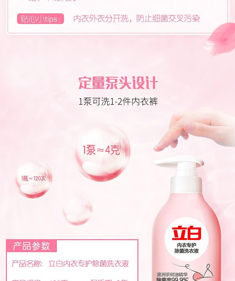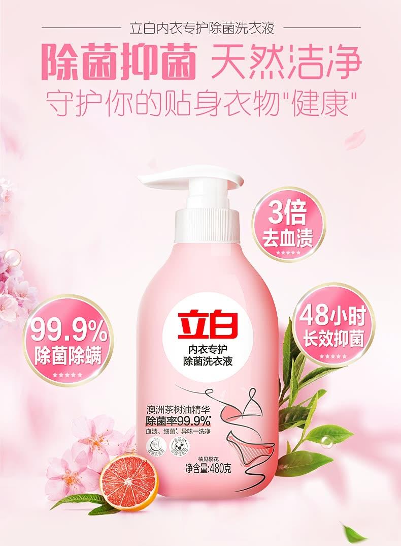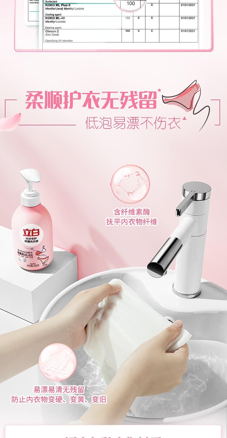商品属性 [供应商] 得力集团有限公司 [品牌] 立白(Liby) [型号] 内衣专护除菌 [名称] 立白(Liby) 内衣专护除菌 洗衣液 480g(单位:瓶)