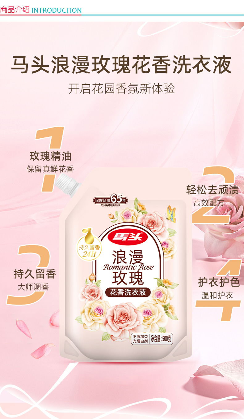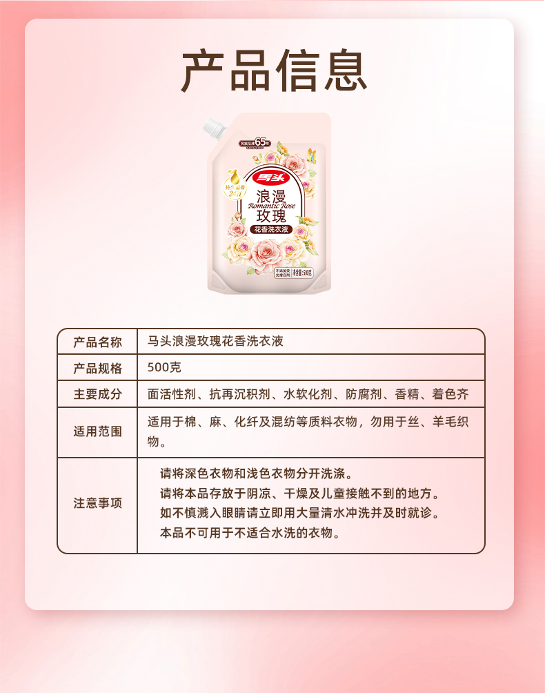 商品属性 [供应商] 科力普科技集团股份有限公司 [保质期] 3年 [产地] 湖南 [功效] 去渍 [香型] 玫瑰花香 [品牌] 马头 [型号] JC001