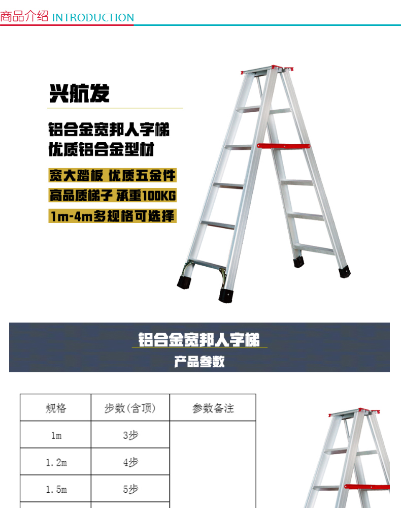商品属性 [供应商] 科力普科技集团股份有限公司 [品牌] 兴航发 [型号] 人字梯