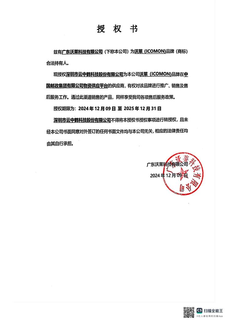 商品属性 [供应商] 深圳市云中鹤科技股份有限公司 [品牌名称:] 沃莱(ICOMON) [商品型号:] SO01 [商品sku编码:] 1125899908511357 [重量:] 1.00kg [产地:] 广东 [单位:] 个