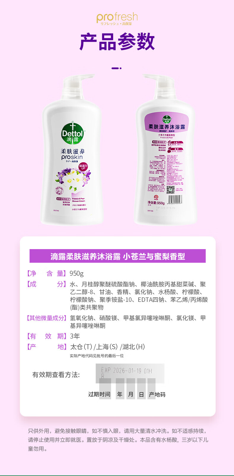 商品属性 [供应商] 深圳市怡亚通供应链股份有限公司 [品牌:] 滴露(Dettol) [型号:] 小苍兰蜜梨香 [规格:] 950g
