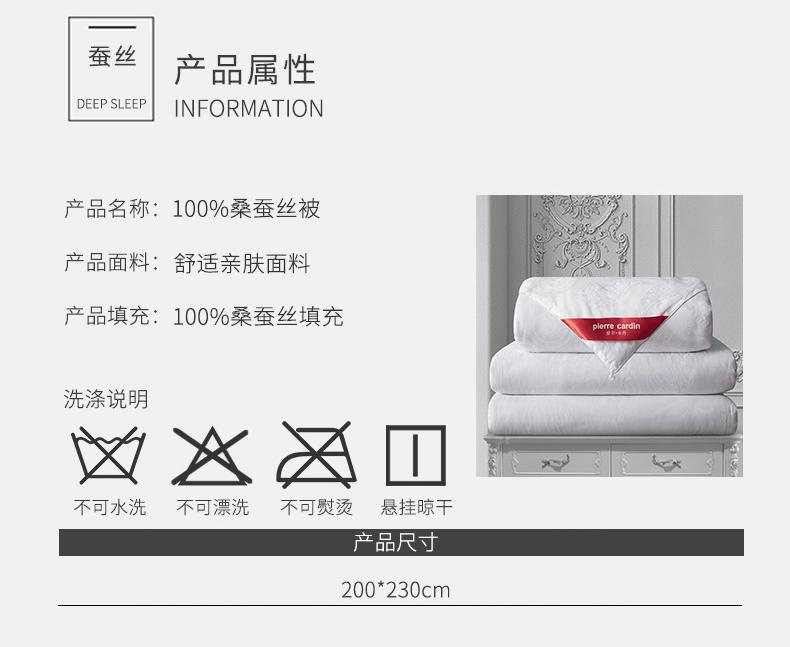 商品属性 [供应商] 深圳市怡亚通供应链股份有限公司 [品牌:] 皮尔卡丹(Pierre Cardin) [型号:] 桑蚕丝被 [规格:] 200*230cm
