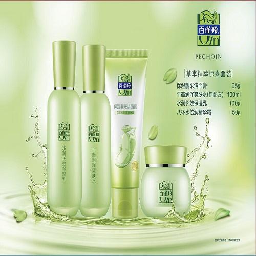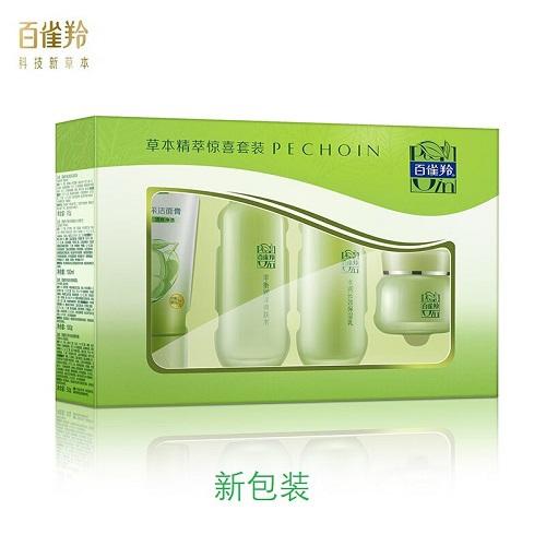 商品属性 [供应商] 上海邮乐网络技术有限公司 [属性名称] 属性值 [产品名称] 百雀羚PECHOIN面部护肤套装草本精萃惊喜 [功效] 补水,保湿,深层清洁 [保质期] 三年半
