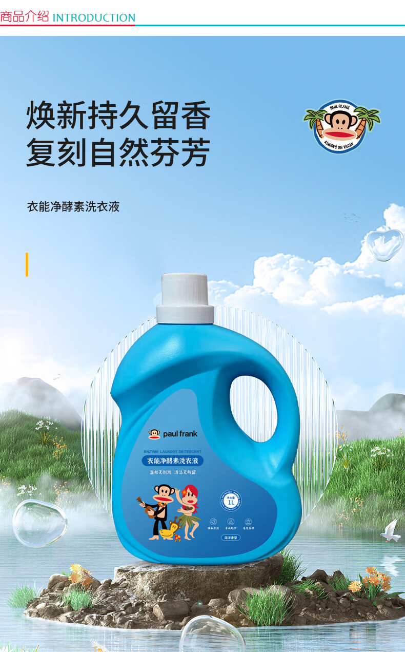 商品属性 [供应商] 科力普科技集团股份有限公司 [香型] 自然芬芳 [功效] 去污 [产地] 中国 [保质期] 3年 [品牌] 大嘴猴 [型号] 衣能净