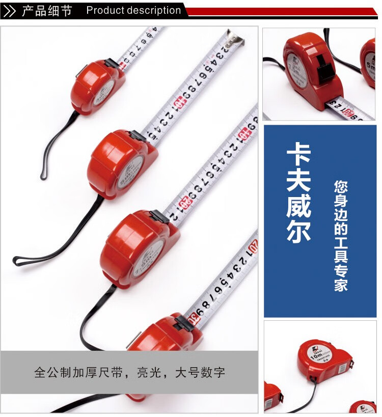 商品属性 [供应商] 德致商成集团有限公司 [是否带自锁] 带自锁 [包装清单] 卡夫威尔精品卷尺3MX16MMTM0001A01x1 [商品产地] 中国大陆
