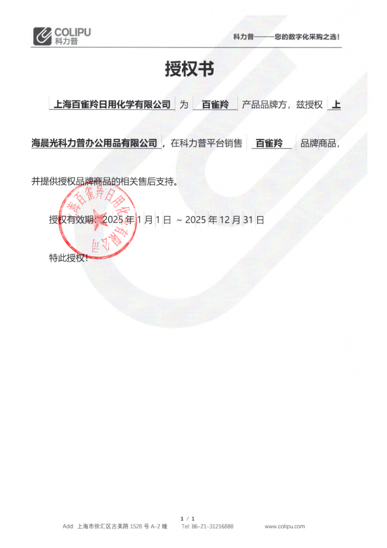 商品属性 [供应商] 科力普科技集团股份有限公司 [品牌] 百雀羚