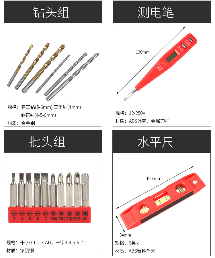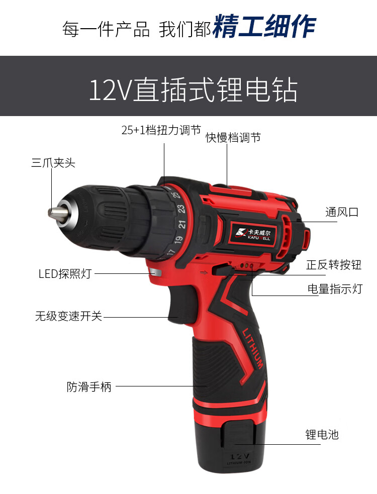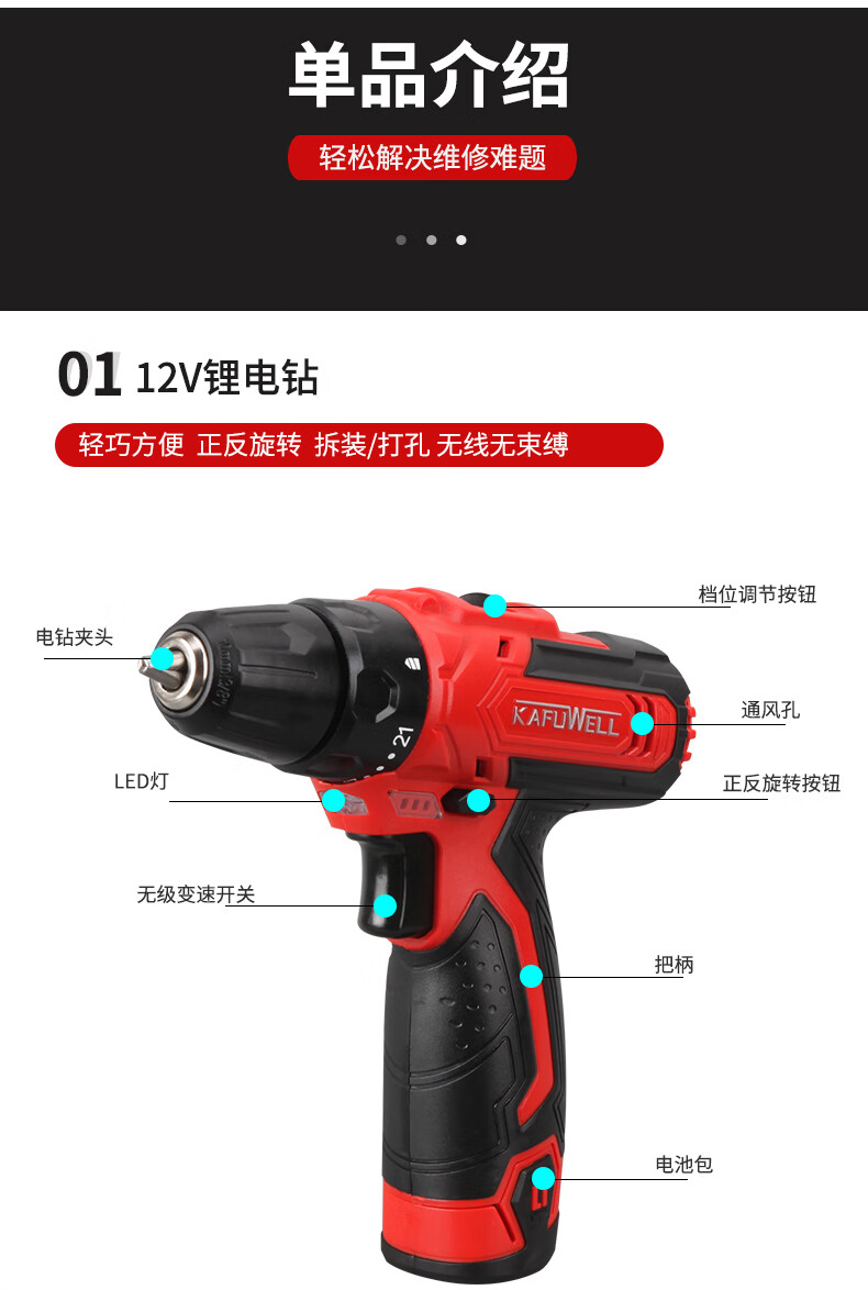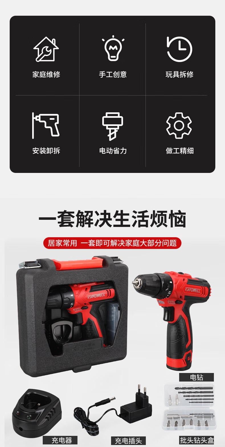 商品属性 [供应商] 德致商成集团有限公司 [电源方式] 直流电 [包装清单] 卡夫威尔电钻工具组套P4609Ax1