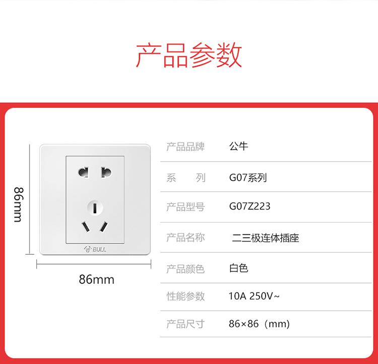 商品属性 [供应商] 史泰博(上海)有限公司 [品牌] 公牛(BULL) [型号] G07Z223