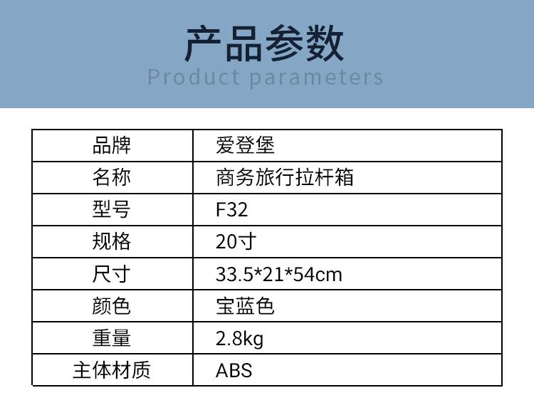 商品属性 [供应商] 深圳市怡亚通供应链股份有限公司 [品牌:] 爱登堡 [型号:] F32 [规格:] 20寸 轻音顺滑